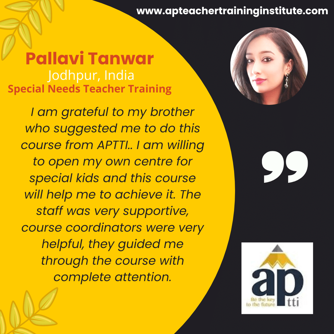 There are various online webinars and workshops that occur. This will give the scope for the aspirants to know more about Special Educational Needs. Various internship opportunity is also provided. APTTI provides placement assistance. The alumni reviews on our website can help the aspirants to decide.