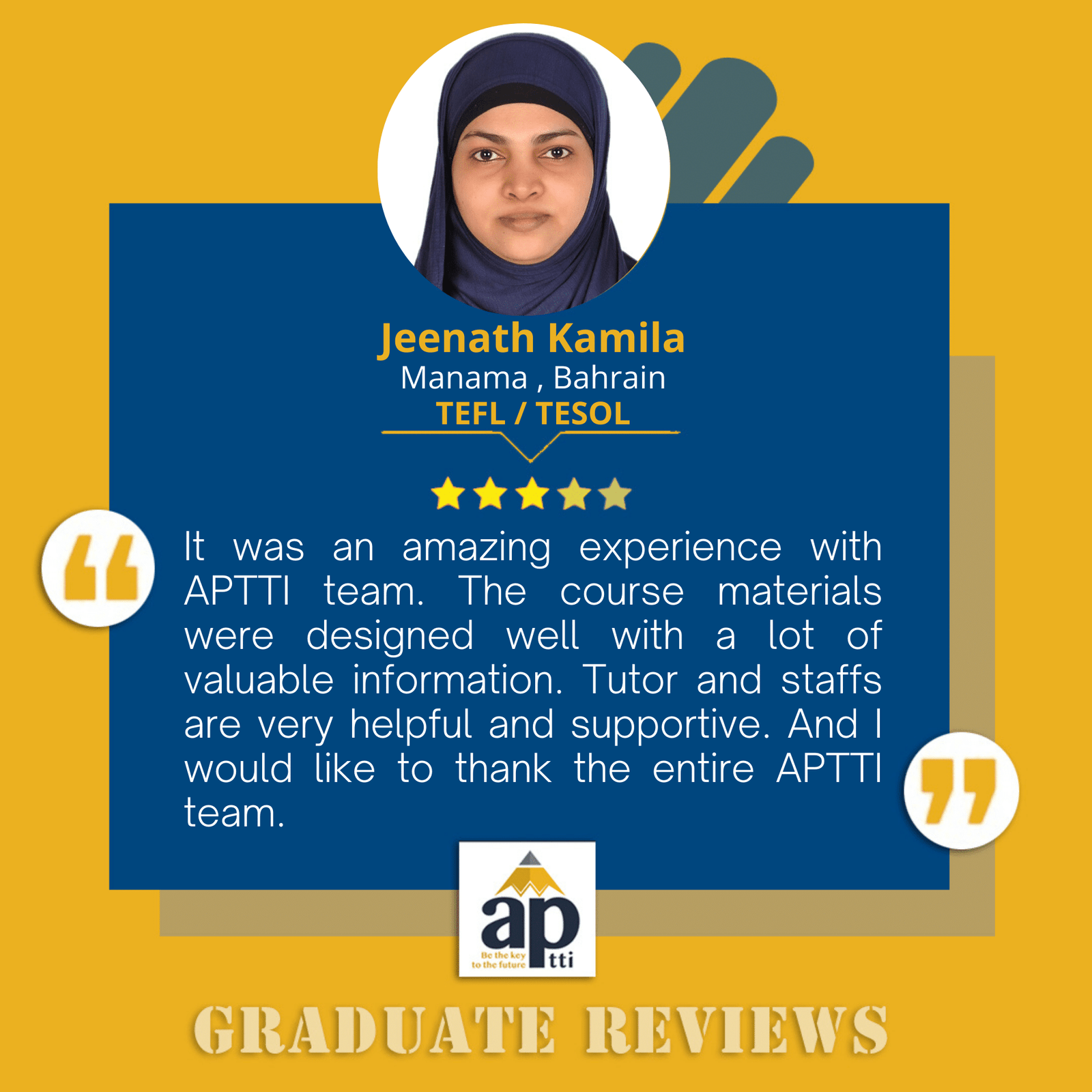 In APTTI, the aspirant has to pay TEFL course fees. This varies for different degrees and duration. If you are interested then contact us to know more about the course fee and structure.